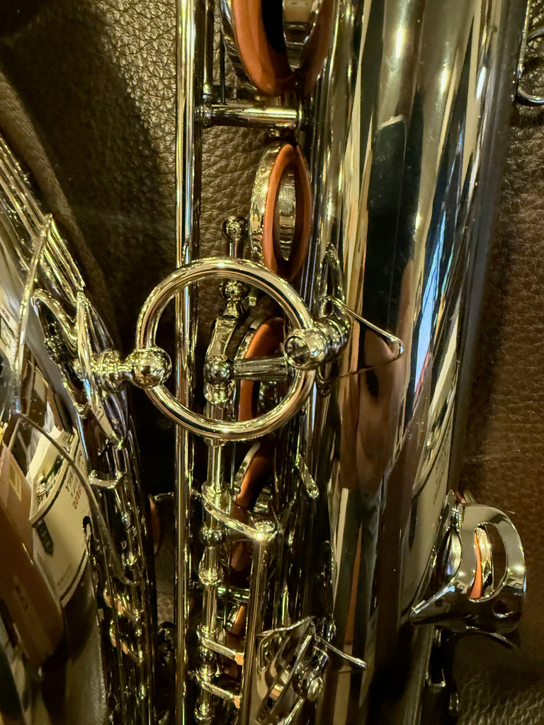 - Shock absorbing Paris Styled bell ring, angled pinky Eb and C paddle keys-